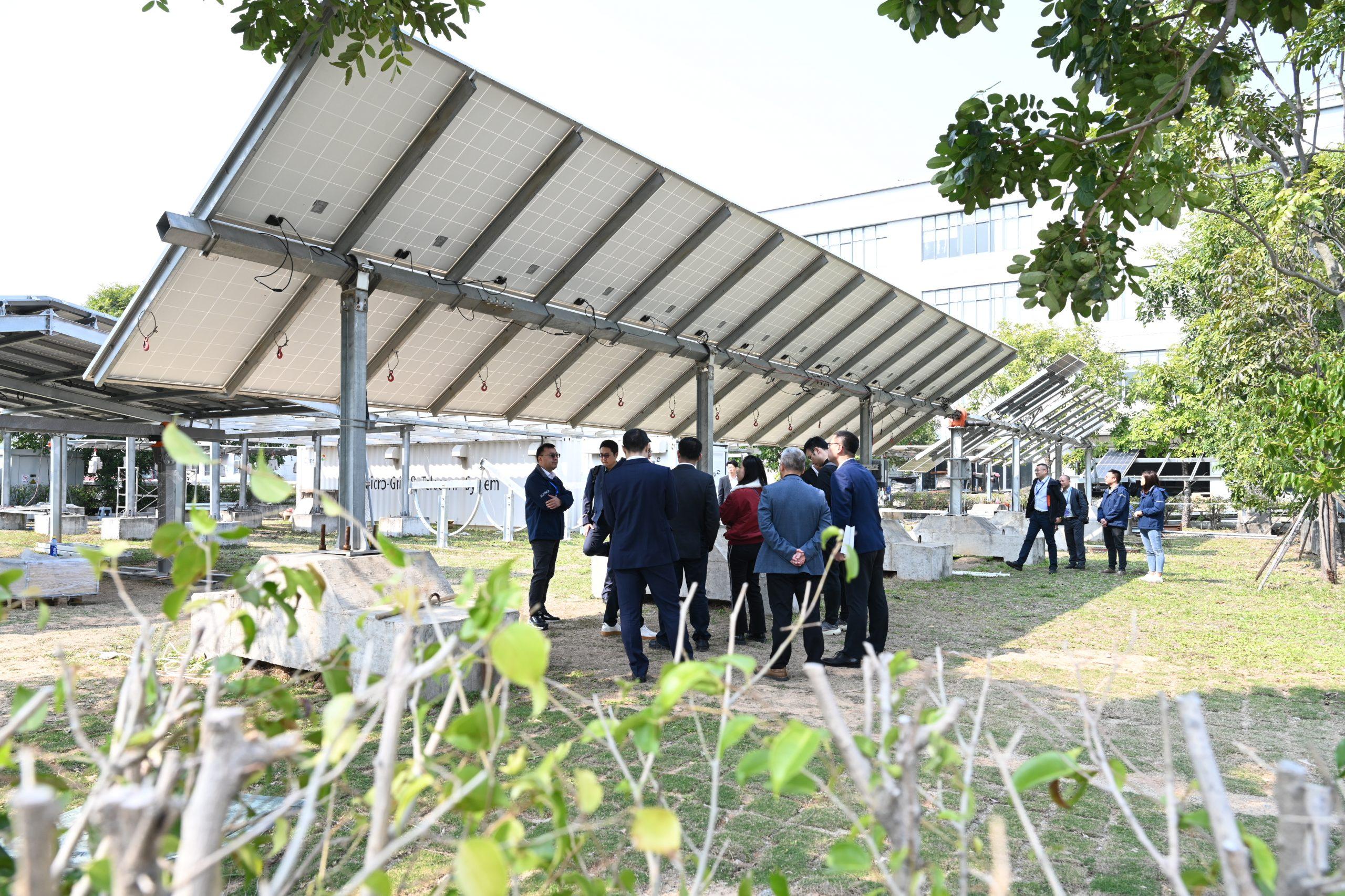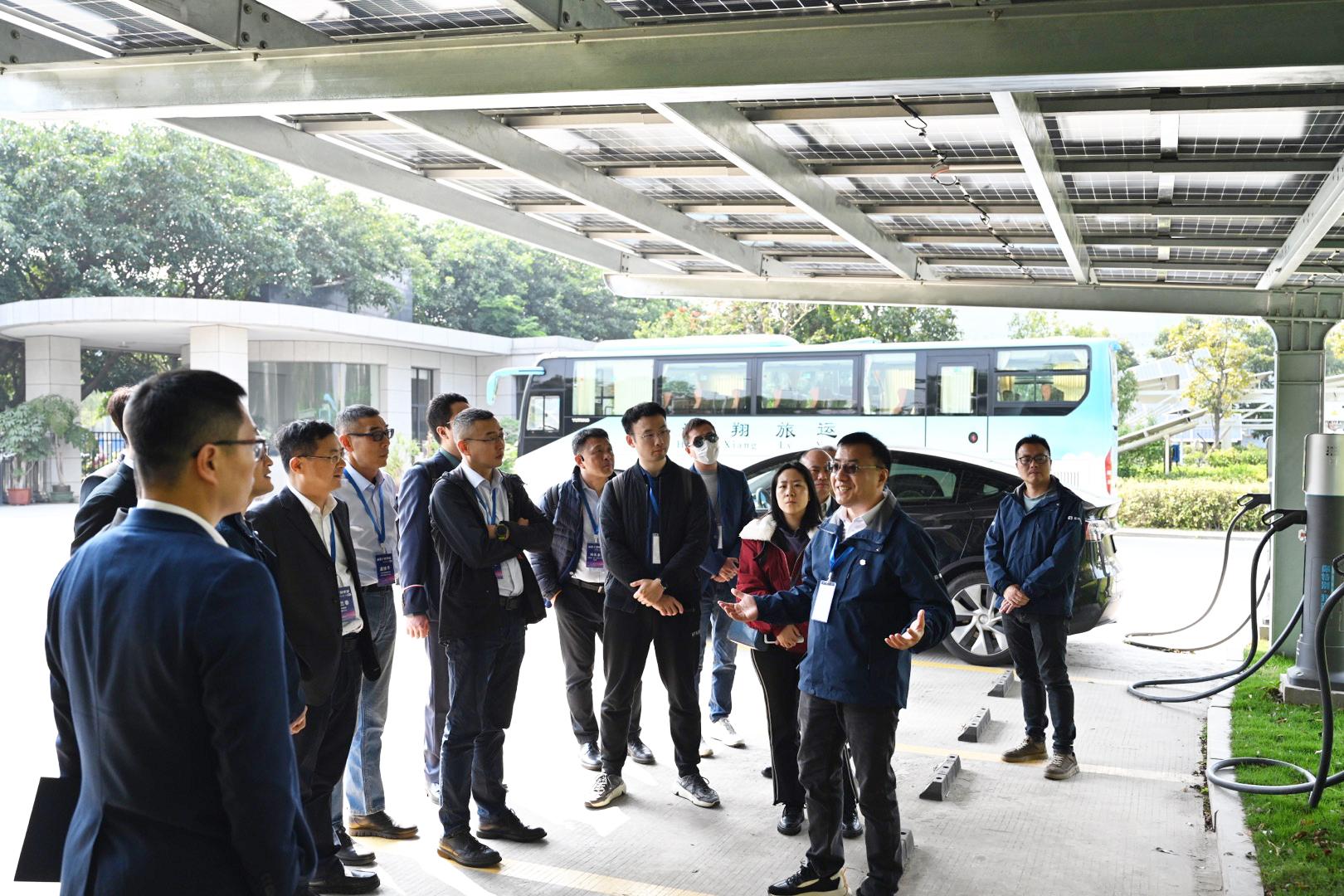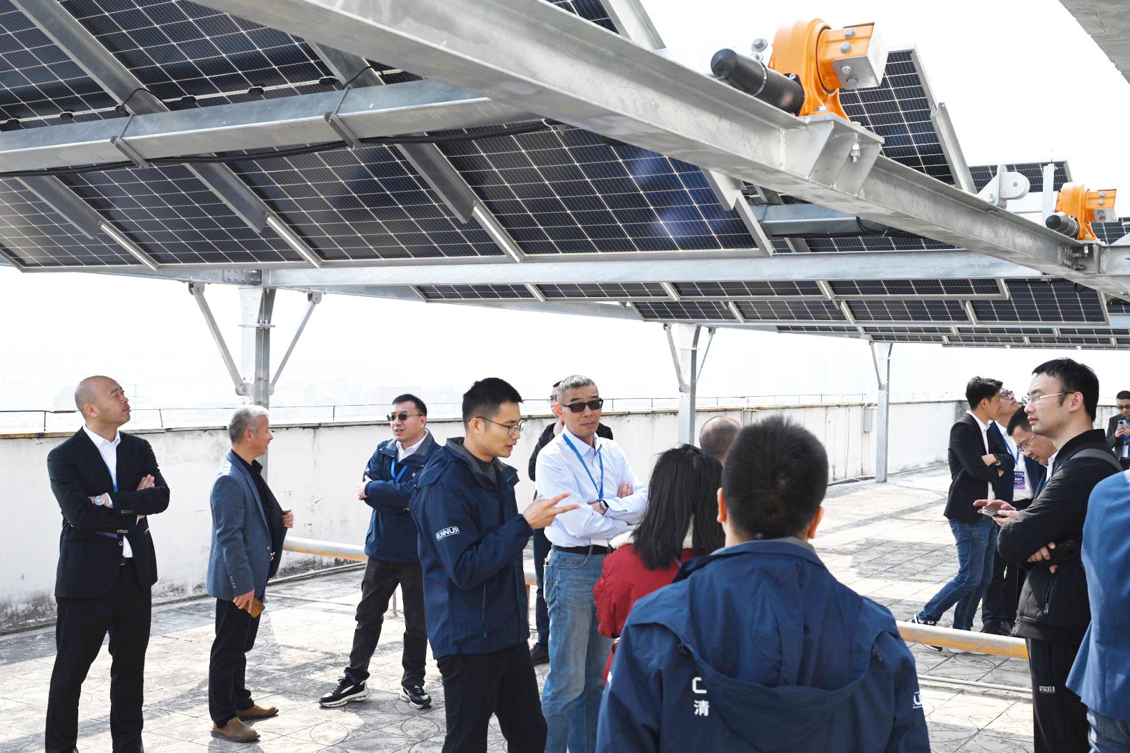 清源科技厦门总部作为先进的绿色低碳园区示范基地,共有十多处光伏电站,高峰时期园区50%以上的用电均为光伏电站所发的绿电。同时该园区也是光伏发电应用全景解决方案的缩影,从屋顶光伏电站、绿化带上的光伏电站、光伏车棚、BIPV阳光房等场景应有尽有。其中,数字化智能光伏跟踪器以先进的跟踪算法为基础,自带高品质与可靠性,在极端天气下仍可保持优秀的气动稳定性,可有效提升光伏发电量达20%,提高电站投资回报率。中欧校友在实地考察中了解了光伏发电的原理及实际运用场景,通过SCADA数据云平台云参观了清源科技在中国境内所投资的近百座光伏电站的发电概况,近距离感受光伏电站在数字科技驱动下的应用与提升。