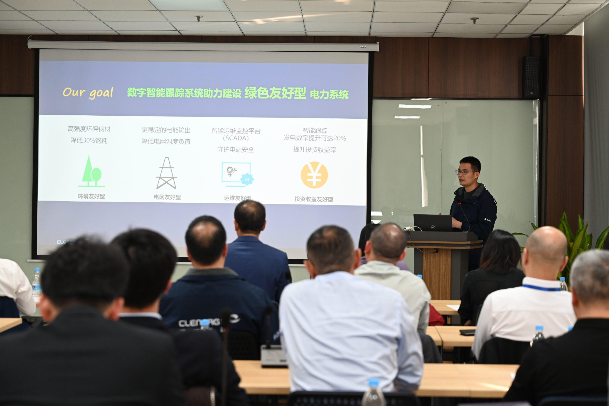 清源易捷总经理付斌针对光伏行业在双碳时代下的发展机遇做了分享与总结,清源科技数字跟踪研发经理陈建江对数字化智能跟踪系统助力光伏建设做详细介绍。清源科技在数字能源方面已经有了成熟的模式,包含智慧光伏+数字能源、数字智能跟踪系统、电站智能运维系统、智能设计报价系统。