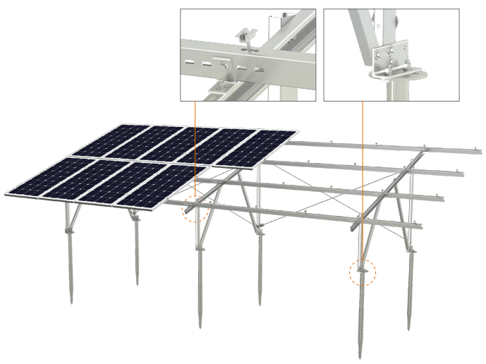 采用镀铝镁锌,交期短,成本低,适用于大型地面电站。 - 安装便捷