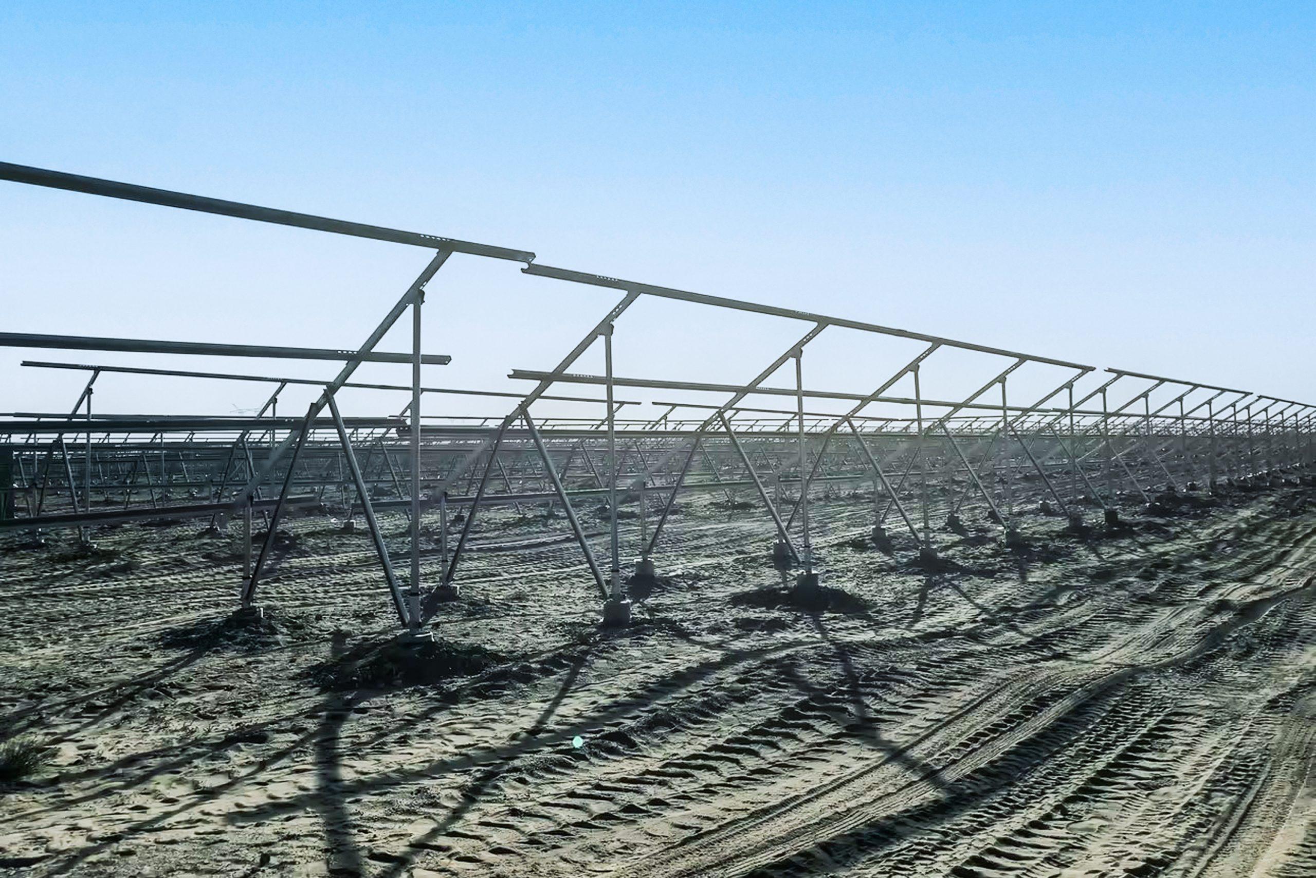 该系统采用新型镀铝镁锌钢,具备卓越的耐腐蚀性,能够在低温、高热、风沙侵袭等极端环境中稳定支撑。系统安装结构灵活多变,可适用于不同风载和雪载地区;安装便捷,节省时间及人工成本,为大型地面电站降本增效打开新通道。值得一提的是,科学的结构设计巧妙地为梭梭等固沙植物预留生长空间,让光伏产业与生态修复在这片土地上和谐共生,共筑绿色屏障。