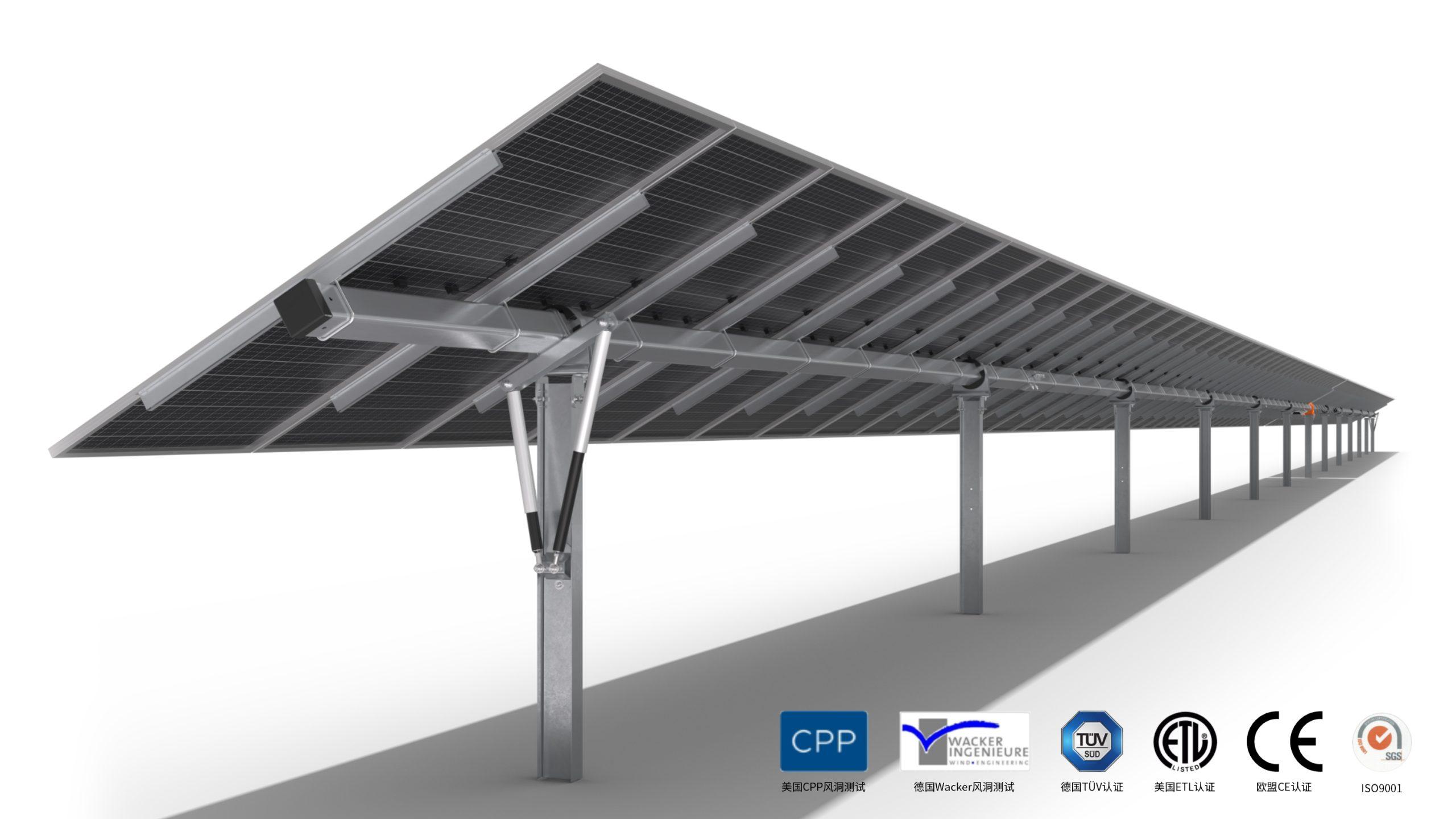 值得一提的是该系统拥有优越的安全可靠性能与全面的专业认证,通过美国CPP、德国Wacker等行业风洞工程权威机构进行科学严谨的气动稳定性测试,产品成功取得德国TÜV、美国ETL、欧盟CE、ISO9001等专业权威认证,该系列产品已应用于国内外超1GW大型地面光伏电站。